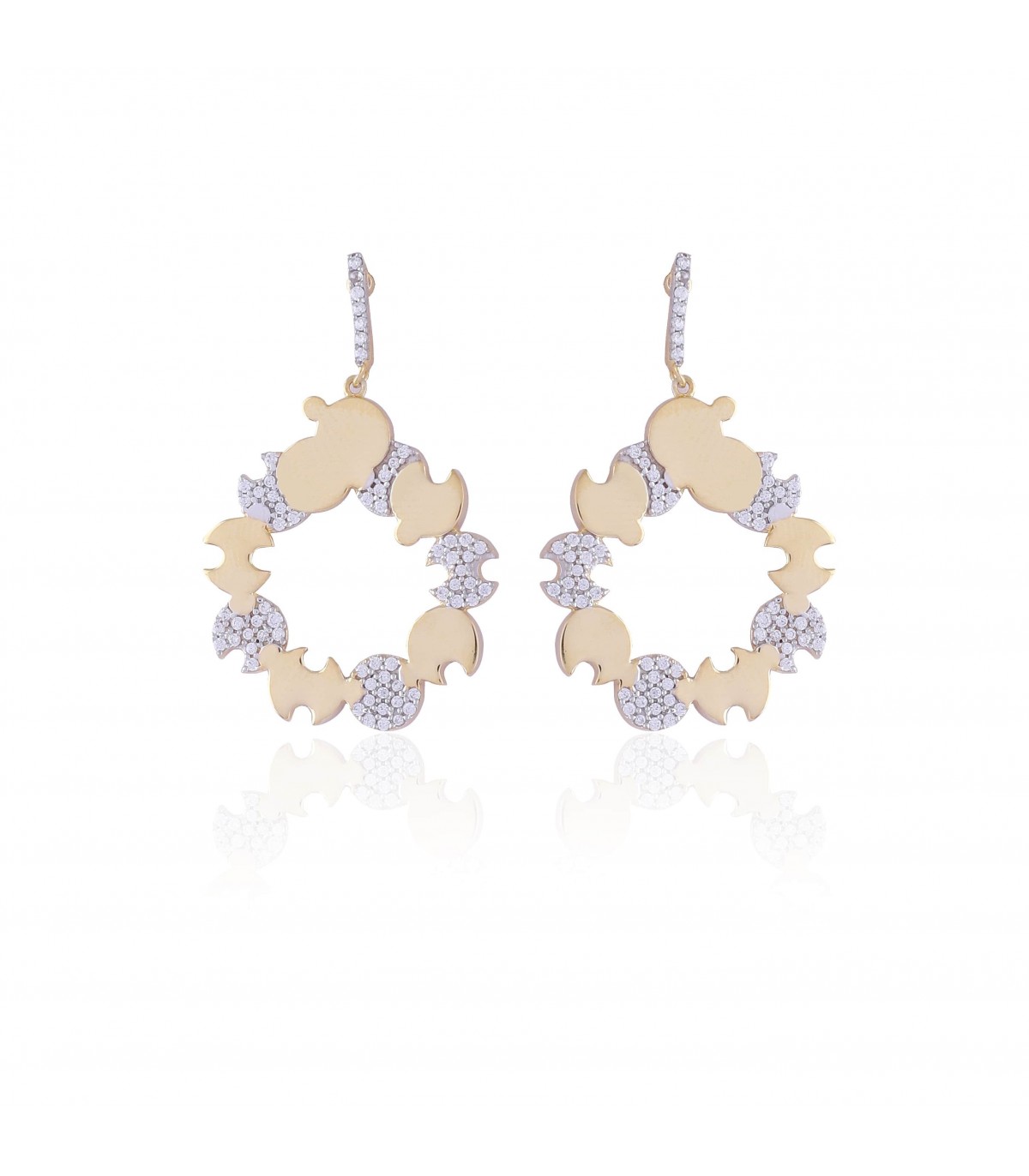 The Puzzle Glitz earrings are crafted by our master craftsmen in 925 Silver, in a 1-micron 22K Gold finish, honoured with 103 brilliant Astoraa™ Diamond-CZ Stones.