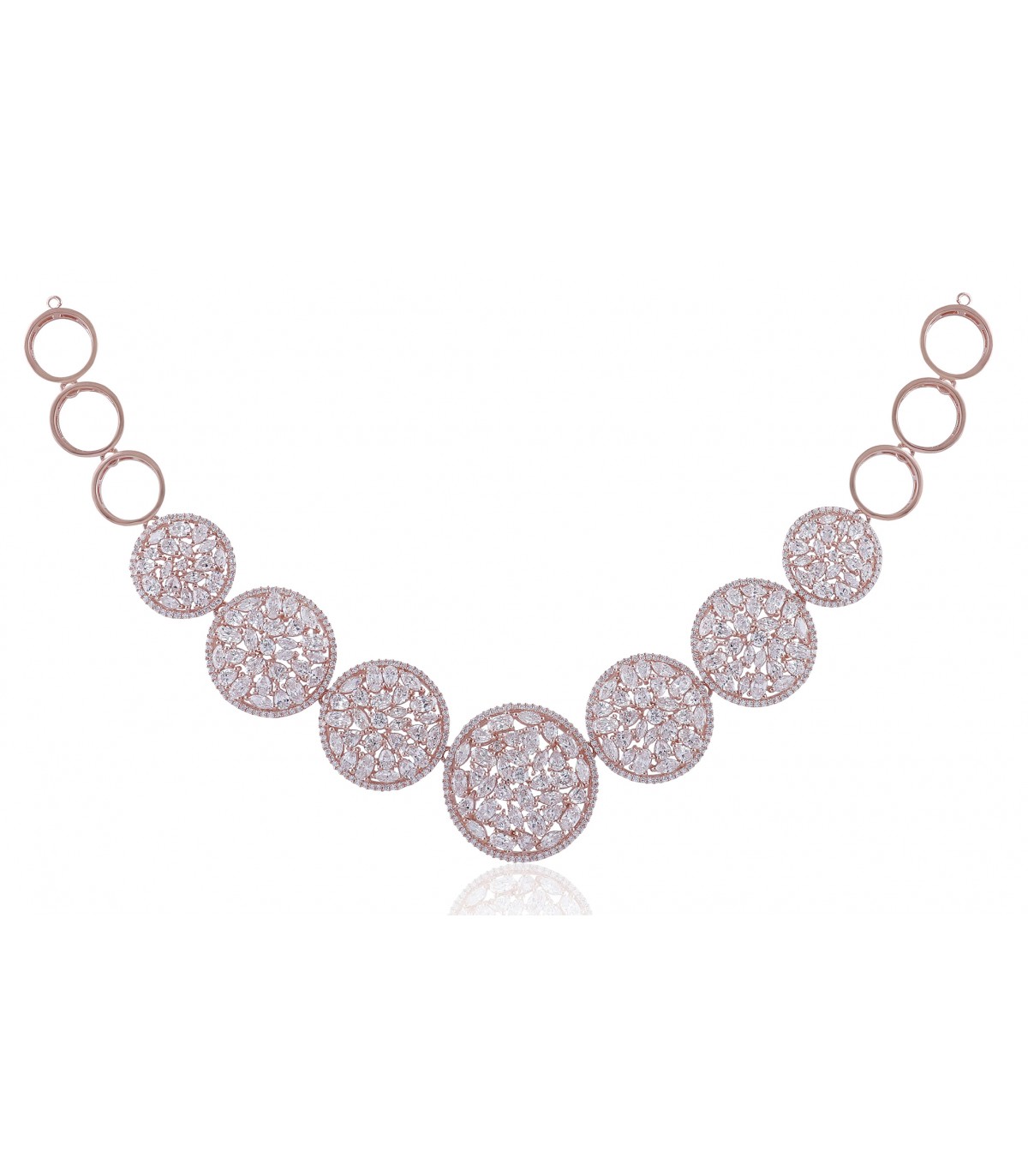 The grandeur of this Red-carpet ready stunner will lend you the panache, for the showstopper that you are.Incredible discs of dancing galactic stars, handcrafted by our master craftsmen in 925 Silver, with a 1-micron Italian Rose Gold Plating, honoured with 548 Astoraa™ Brilliant Cut CZ Stones exhibit the brilliant sparkle of the shining stars in the galaxies.