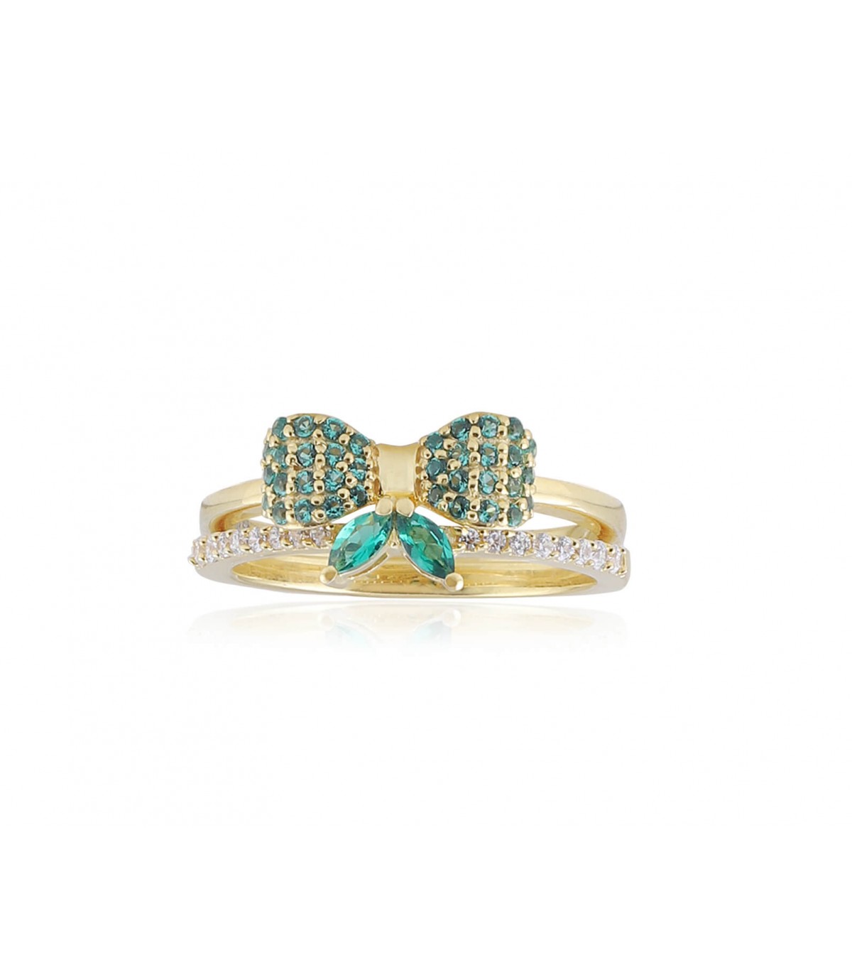 A delicate stack of two separate rings created by Astoraa™ design studio to complete a bond by forming a stackable bow ring.